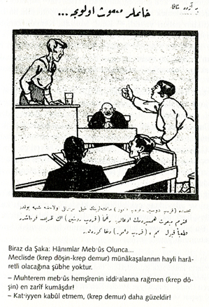 Cumhuriyet gazetesinde şöyle yazılar çıkacaktır: “Salonda zarifane konuşmaktan, yahud gazetecilere resimlerini vermekten, yahud da balodan sinemaya, sinemadan dansa koşan hanımlara karşı, açık ve samimi konuşalım, biz erkekler hürmet de etsek yalandır. Bu hürmet ancak onların zarafetlerine daha ince bir çeşni vermek ve sonra da bu zarafeti şaşırmış ve hayran seyr ü temaşa (seyretmek) içindir.”